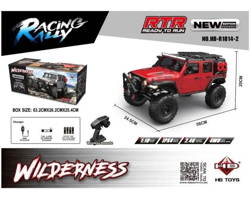 ماشین کنترلی HB-1014-2 یک مدل حرفه ای و قدرتمند آفرود است با طراحی مشابه جیپ رانگلر ساخته شده و مخصوص علاقمندان به مسیرهای سخت و طبیعت گردی با RC می باشد. این مدل با ابعاد بزرگ (63 سانتی متر طول و 26 سانتی متر ارتفاع) و امکانات پیشرفته، تجربه ای واقعی از رانندگی آفرود را برای شما فراهم می کند.